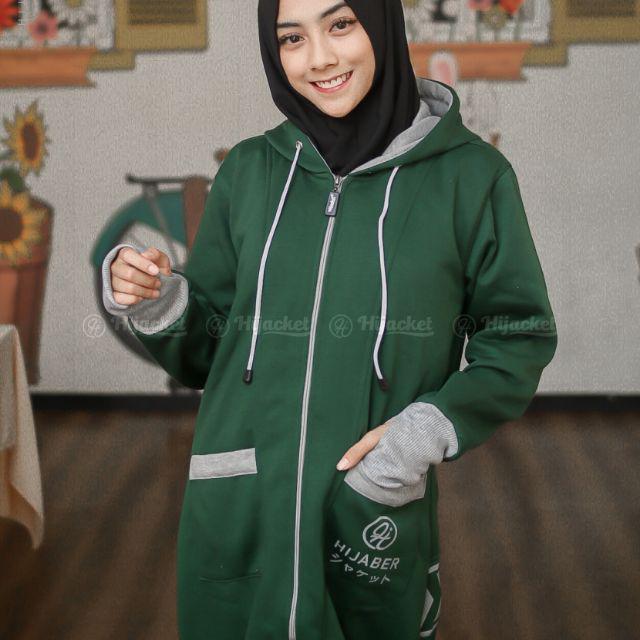 HIJACKET® YUKATA GREEN JAKET PARKA MUSLIMAH BAHAN TEBAL LEMBUT JAKET HIJABERS HIJAKET PARKA