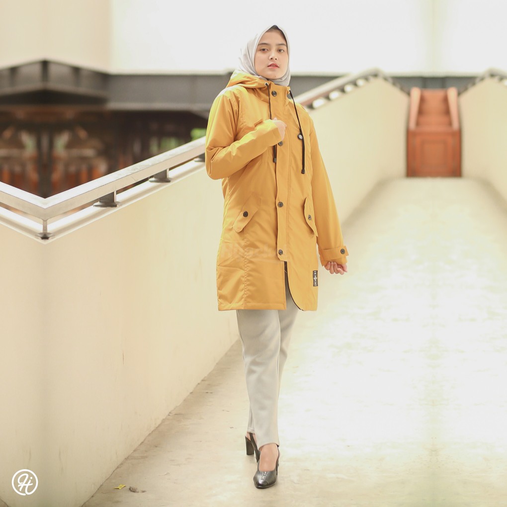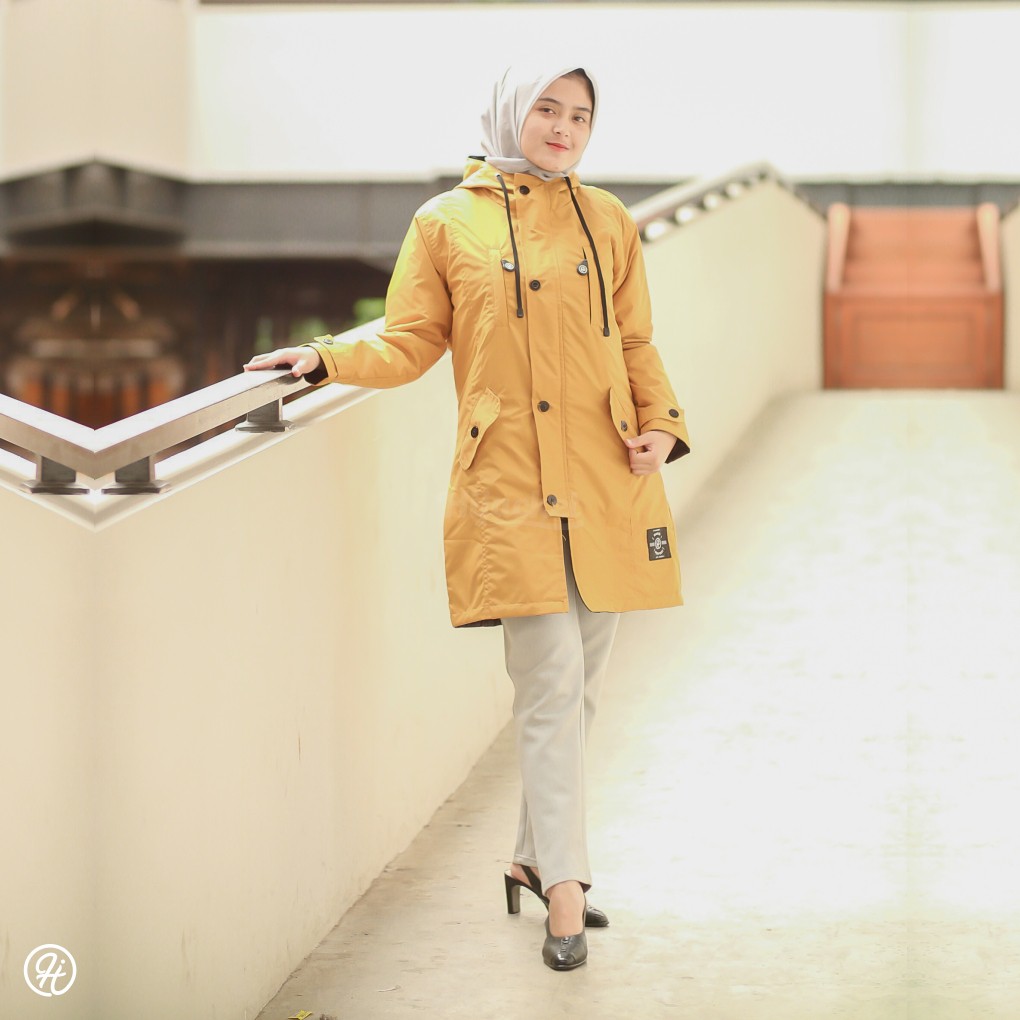 Alasan kenapa harus beli Jaket Parasut Wanita Waterproof Hijacket Ixora Goldenrod Size L XL XXL Hoodie Muslimah Premium sekarang