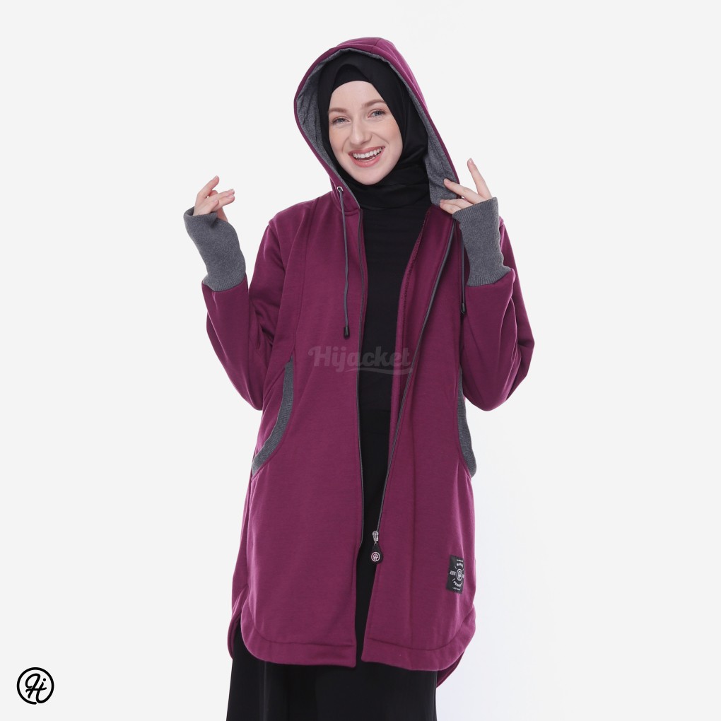 Jaket Jacket Hoodie Panjang Wanita Cewek Muslimah Hijabers Roundhand Finger Handsock Hijacket Avia