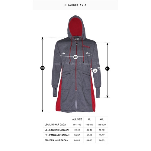 Hijacket AVIA ORIGINAL dirancang khusus untuk Hijaber yang ingin tampil modis & sporty. Dengan model modis, dipadu bordir Hijacket dibagian dada dan gaya jari yang menguatkan aktualisasi diri sebagai hijaber.