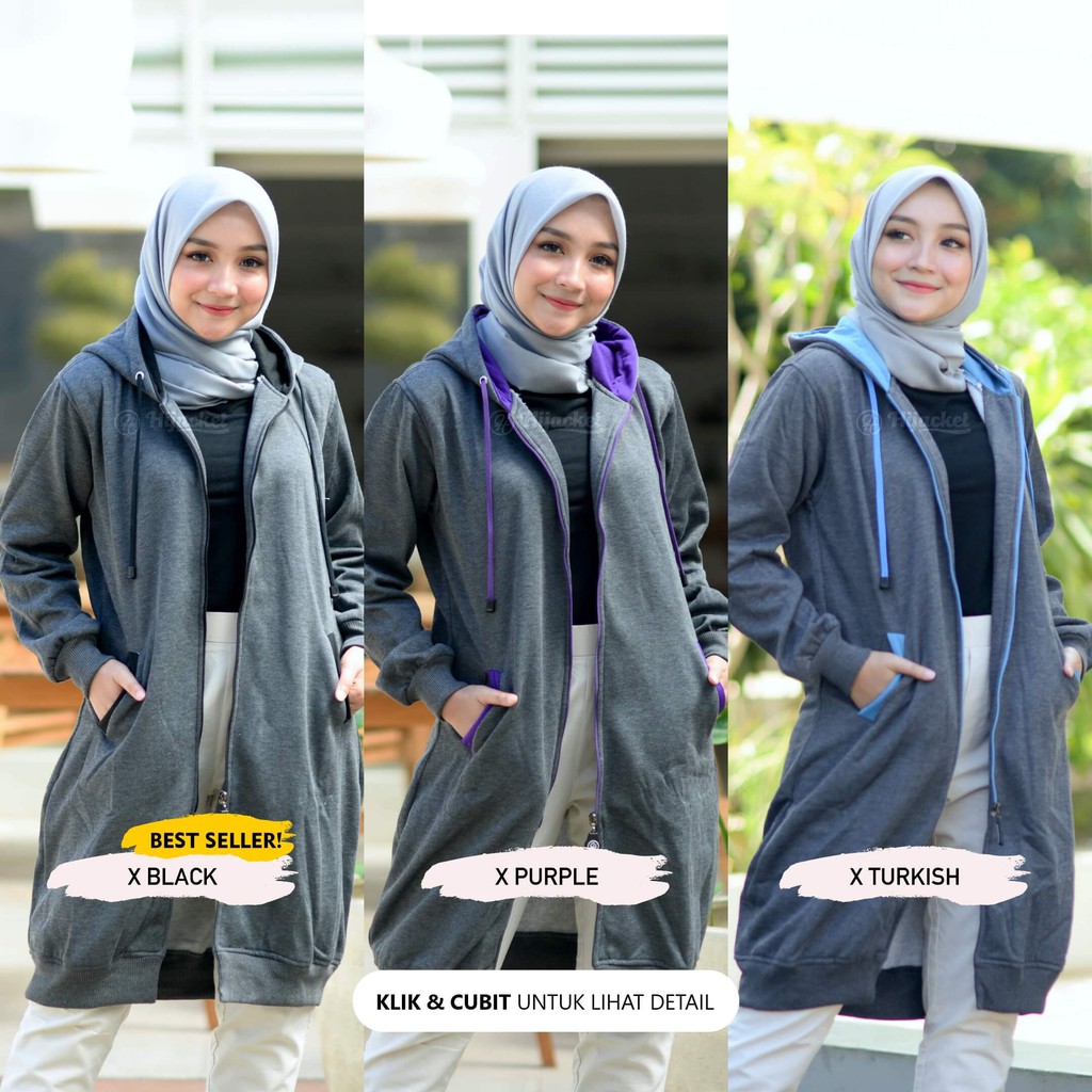 JAKET WANITA muslimah MODEL PANJANG HIJACKET ELEKTRA SIZE L-XL-XXL ORIGINAL | hijaket elektra