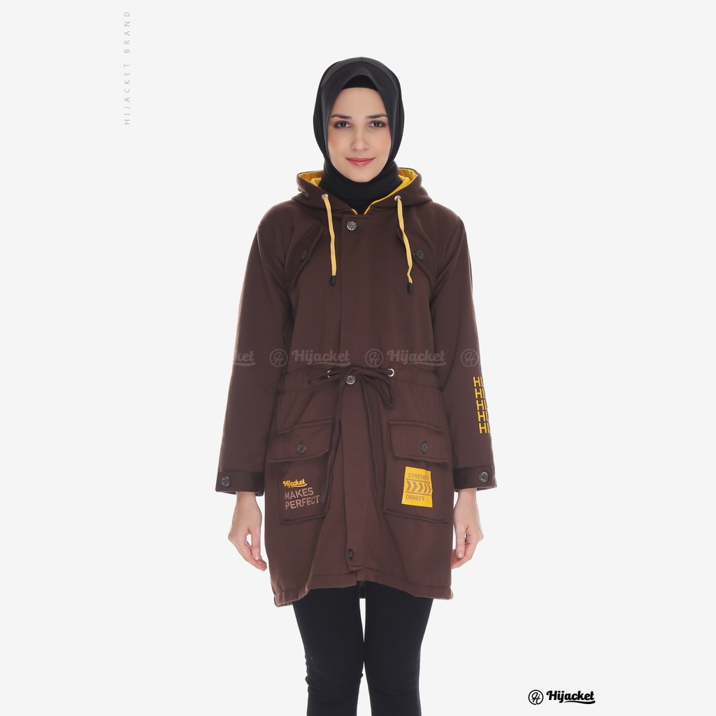 Jaket Hoodie Panjang Wanita Cewek Muslimah Hijaber Jacket Hijab Roundhand Finger Hijacket YK Coklat