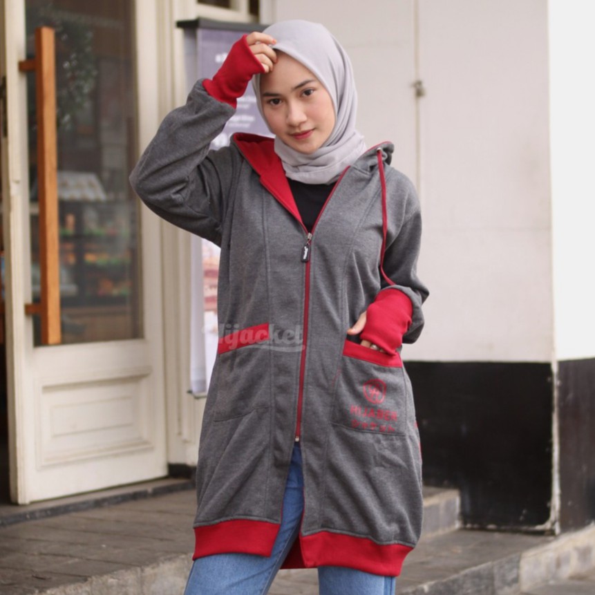 Hijacket Original Basic Grey Hijaket Jaket Jacket Wanita Muslimah Jaket Hoodie Cewek Jumbo Murah Terbaru Jaket Hijaber