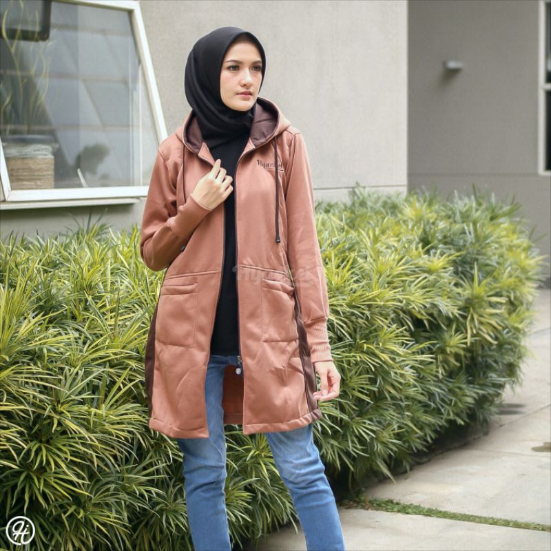 Jaket Tebal Wanita Hijab Hijacket Elektra Hijaket Hoodie Original Model Polos Panjang