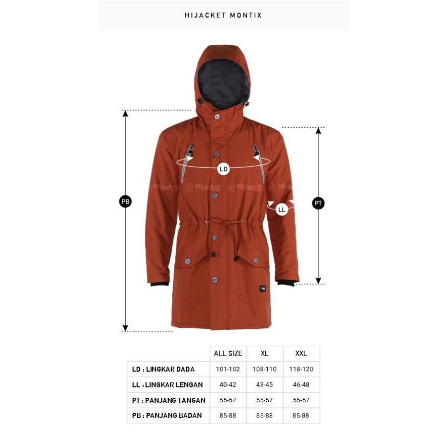Hijacket Montix adalah outwear wajib muslimah yang suka beraktifitas di luar ruangan dan yang suka berpetualangan. Di buat dari bahan impor 100% polyfiber dengan 75% waterproof & windprooff pada bagian luar dan Full dourmill dacron pada bagian dalem yang nyaman & lembut, terdapat kantong pada bagian saku bawah dan atas.