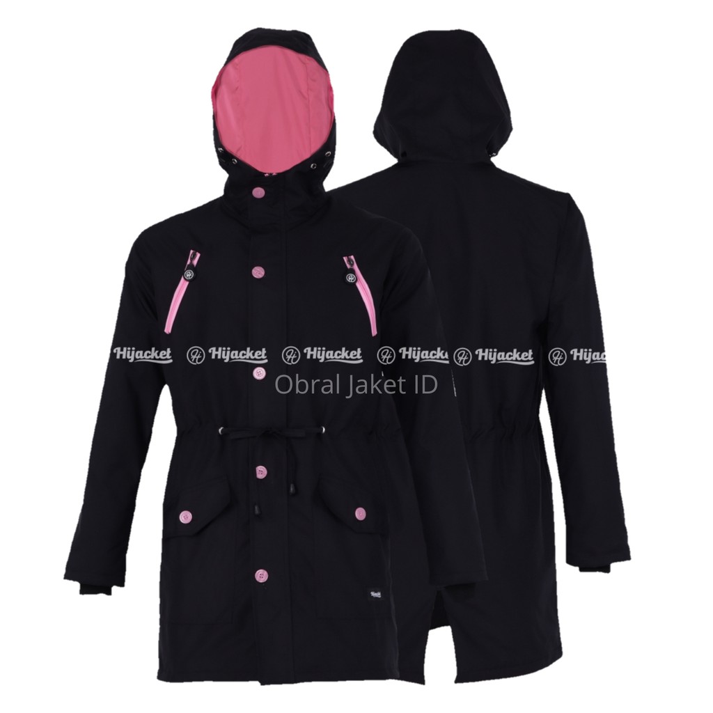 Jaket Parka Wanita Hijacket Montix Black Size L XL XXL Hoodie Waterproof Muslimah Premium