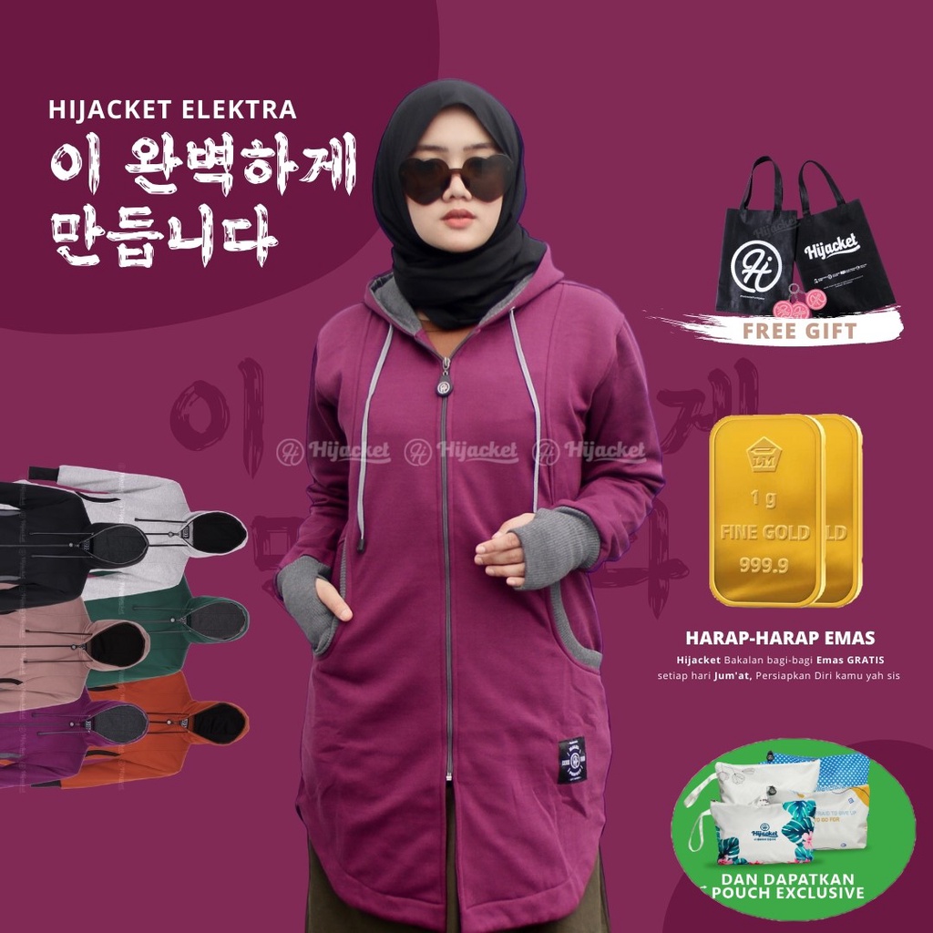 Jaket Tebal Wanita Hijab Hijacket Elektra Hijaket Hoodie Original Model Polos Panjang