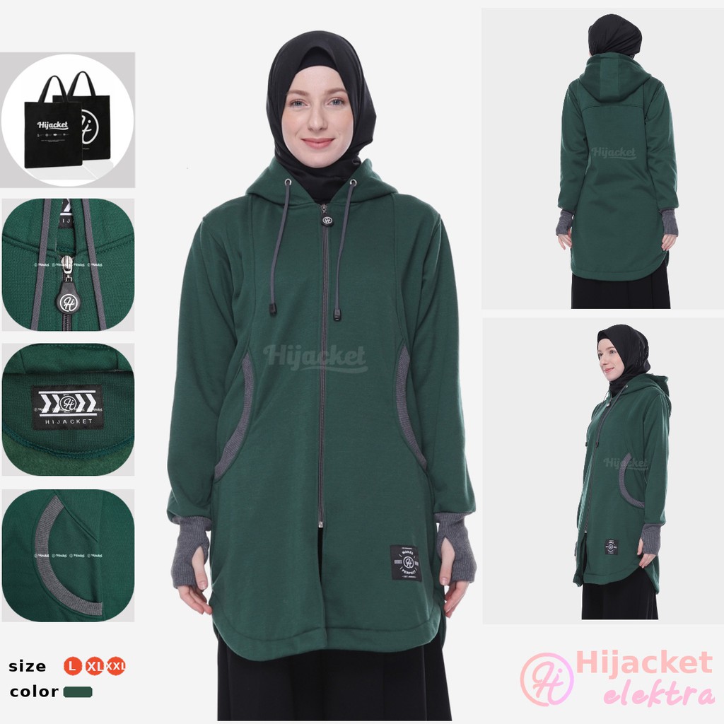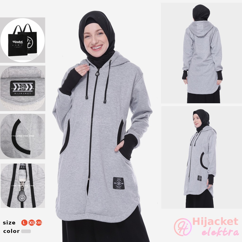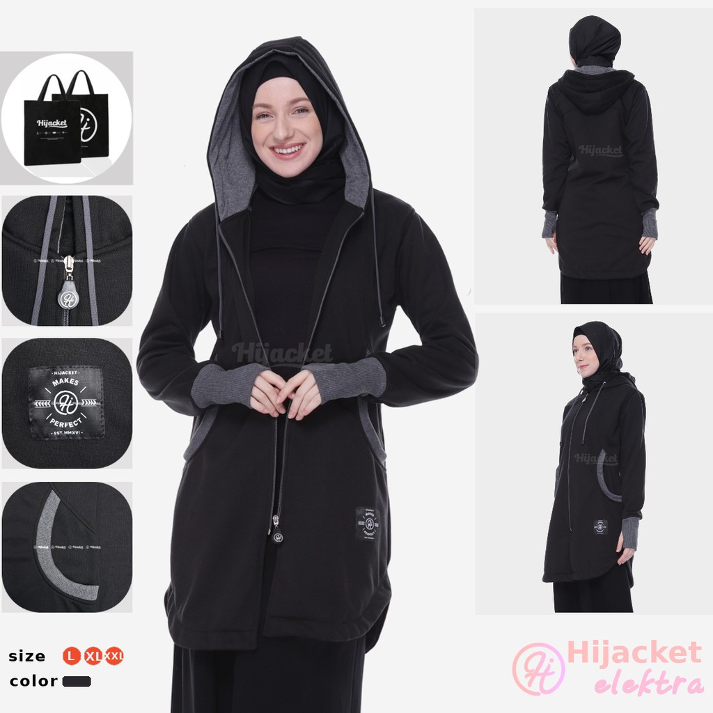 HIJACKET ELEKTRA Original Series adalah salah satu model terbaru dari brand Hijacket memiliki tampilan yang Casual Look untuk menemani aktivitasmu sehari-hari. Model Hijacket Elektra Memainkan desain pola cuttingan yang unik, terdapat handsock untuk para Hijaber, dan model kantong saku special edition. Jaket muslimah Elektra siap membuat hari-harimu semakin sempurna.