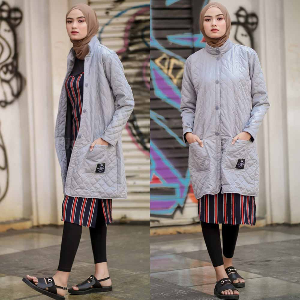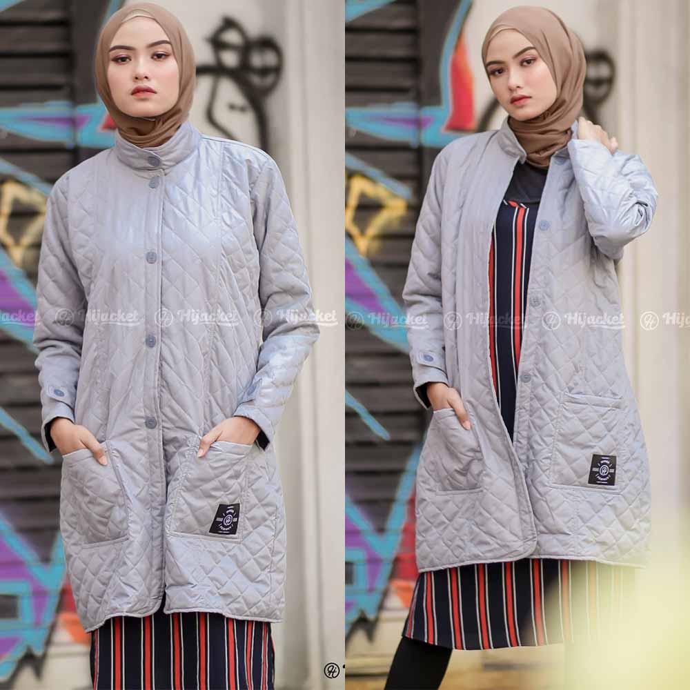Jaket Jacket Hijaber Wanita Cewek Muslimah Cewe Long Hijacket Panjang Terbaru Hijaket Modis BLV Abu