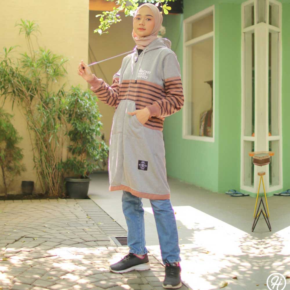 Jaket Jacket Hoodie Panjang Wanita Cewek Muslimah Hijabers Hijacket Fleece Terbaru Kekinian HJ HYR