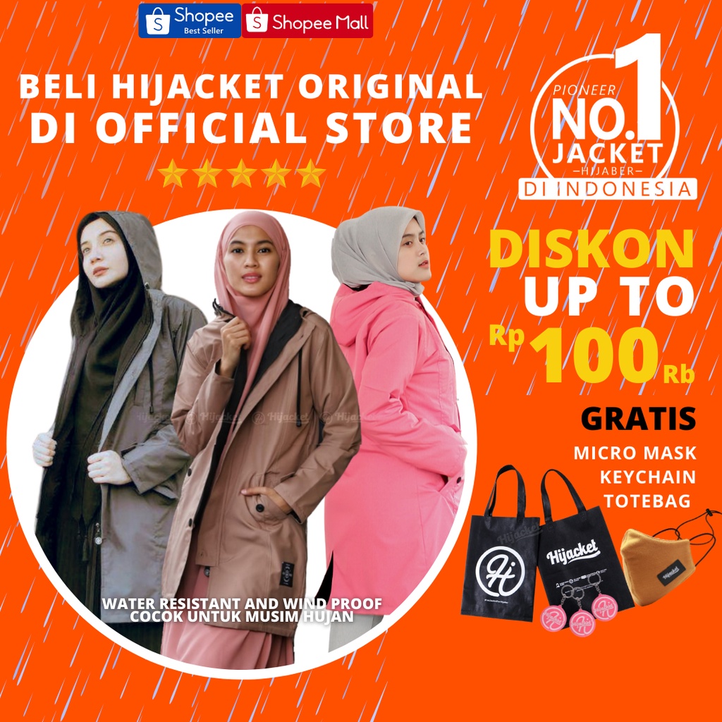 JAKET WANITA MUSLIMAH WATERPROOF WINDPROOF HIJACKET® IXORA ORIGINAL JAKET HIJAB NO 1 DI INDONESIA